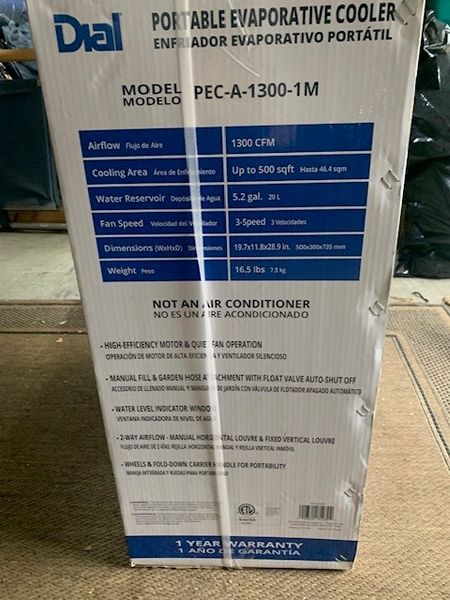 Brand New Dial 1300 CFM Portable Evaporative Cooler (Model PEC A 1300 1M)