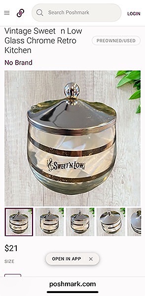 This vintage Sweet 'N Low sugar bowl set was made by Libbey in the 1960s. It includes the chrome lid and spoon. It's a charming nostalgic and unique piece, that's sure to get attention.