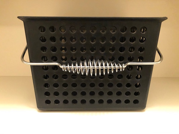 Small storage basket with many uses. 7 inches tall. Metal handle. Very good condition. Asking $2.00.