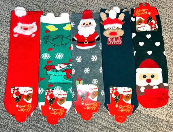Christmas socks, 5 pair bundle of Santa and reindeer designs. 80% cotton/20% polyester. Designed for women's shoe sizes 5-9. Smoke free home. $15/all