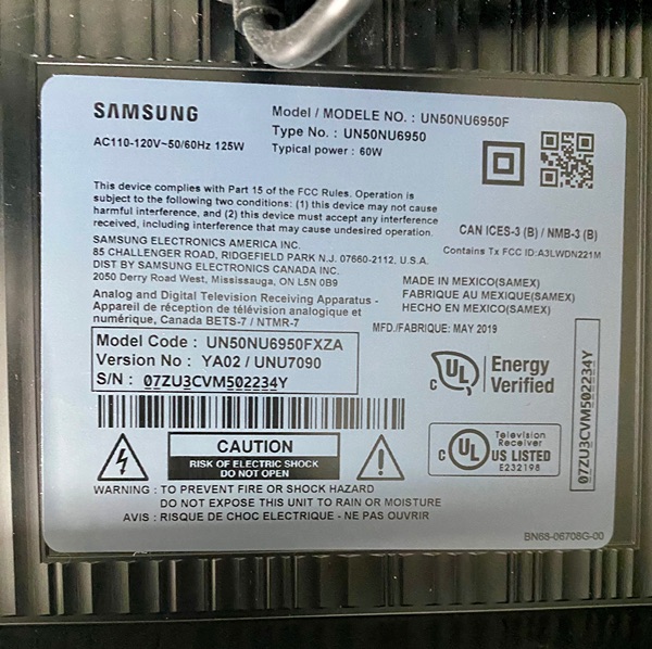 SAMSUNG MODEL UN50NU6950 LCD (LED) TV - Black