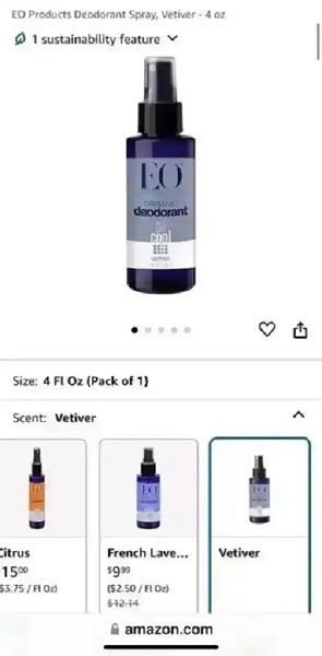 Tom's of Maine Sensitive Care Deodorant Stick and EO Organic Deodorant Spray.