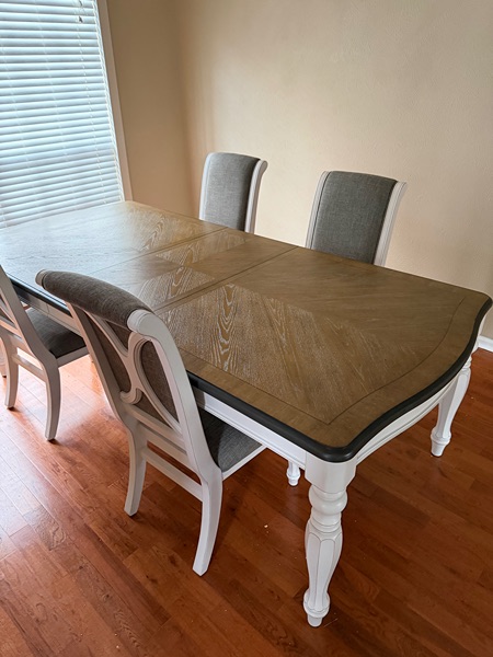 Dining room table and chairs for $400. Only a few months old. Trying to get rid of it quickly.