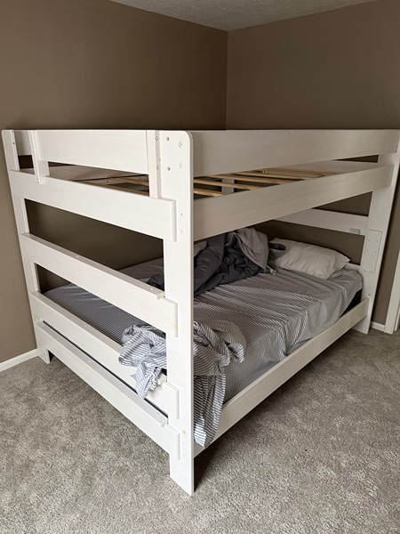 A bunk bed that is for queen size mattresses on both top and bottom. Trying to get rid of it quickly.