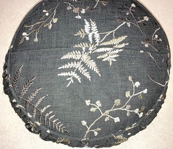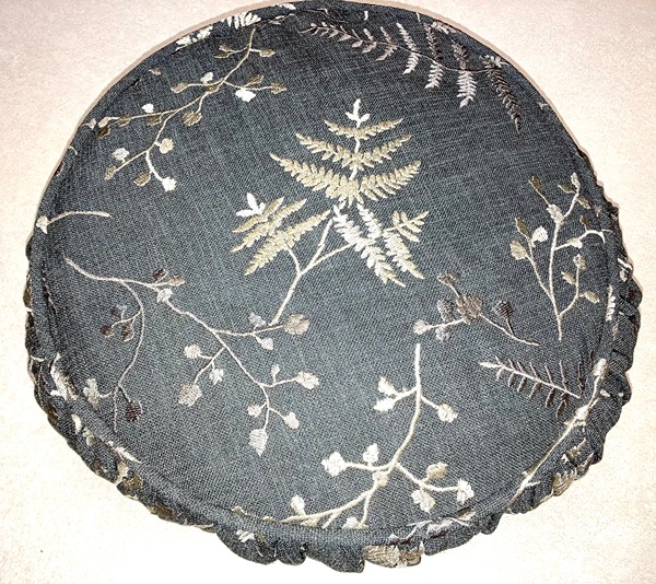 Decorative pillow with removable cover. Measures about 15 inches across at widest point and is approximately 5 inches thick. Currently holds a feather pillow. New condition from smoke free home. $5