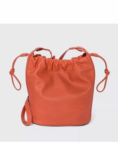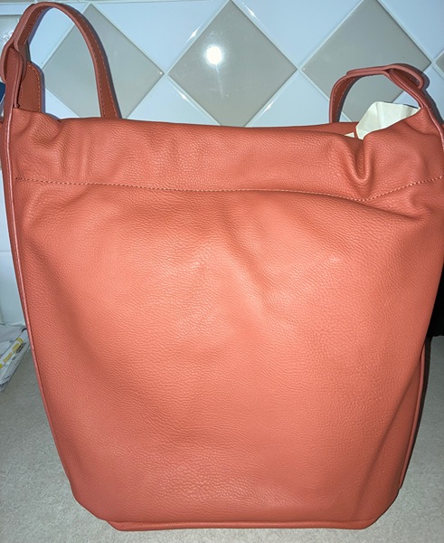 Universal Thread brand bucket style bag in orange. Has a drawstring and magnetic snap closure, spacious interior compartment, side zip pocket and an accessory pocket. New with tags from smoke free home. $10