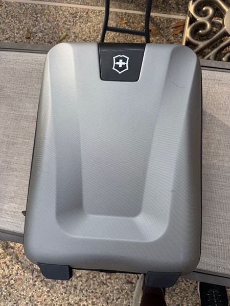 Not traveling for work anymore. 20" x 14" x 9" hard shell carryon luggage. 2 big wheels, sturdy thick handle. Needs a new home.