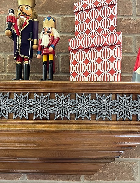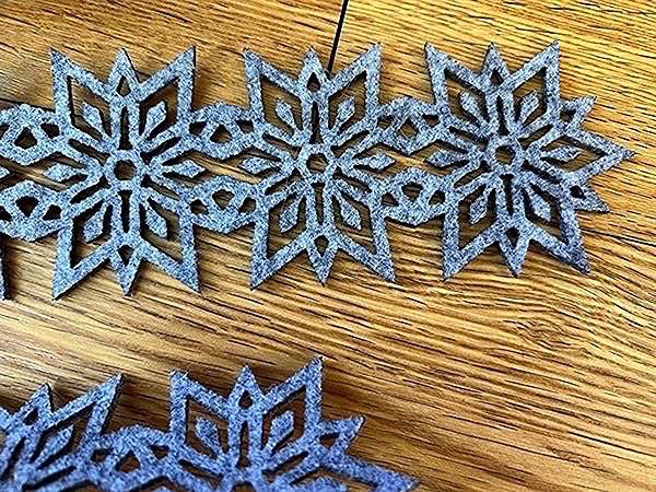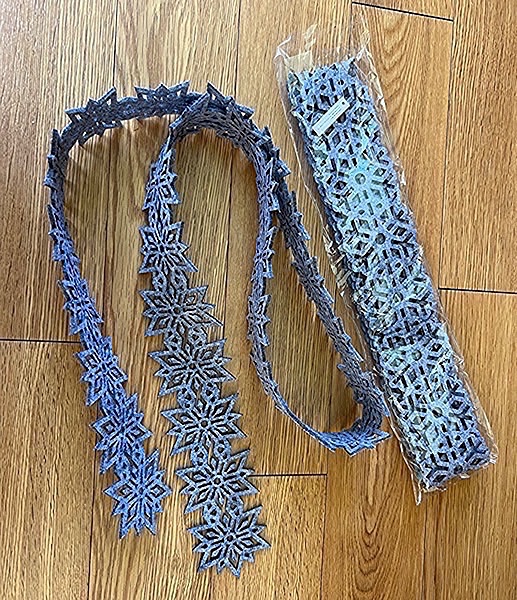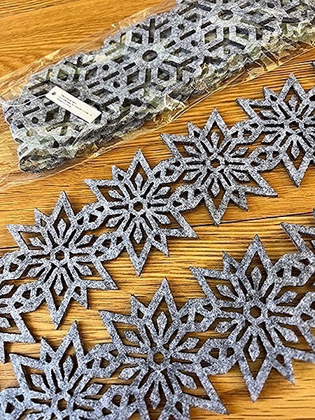 New! Gray felt with snowflake design. Great for any crafting or gift wrapping. Two strands. Each strand is 60” long!