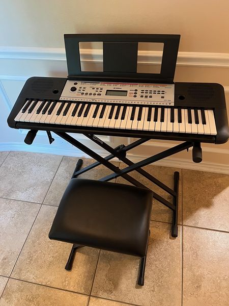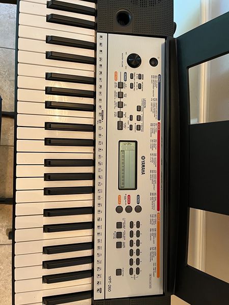 Yamaha YPT-260 keyboard with chair and RockJam Xfinity stand.