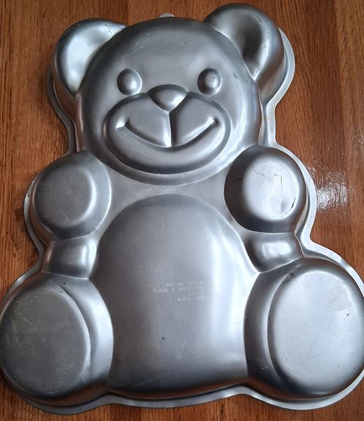 Full-sized metal Wilton shaped cake pan - Decorating ideas included. Serves 12 - uses one box mix. 1982 retired design. Bear shaped $10.