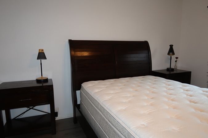 Solid wood bedroom set. Queen bed frame and headboard, dresser, and 2 nightstands. Message for more pictures