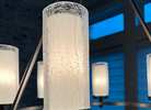 cylindrical, crackled glass shades with white inner glass to create soft light