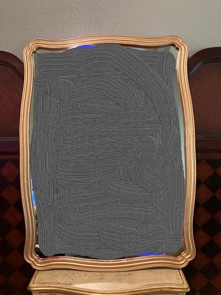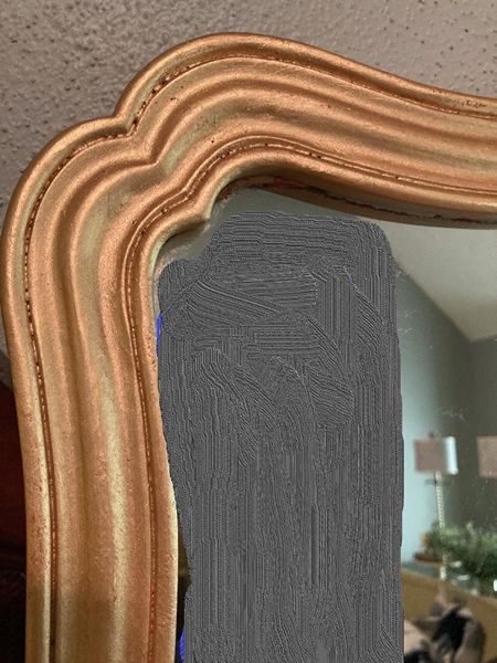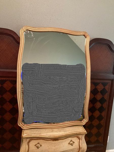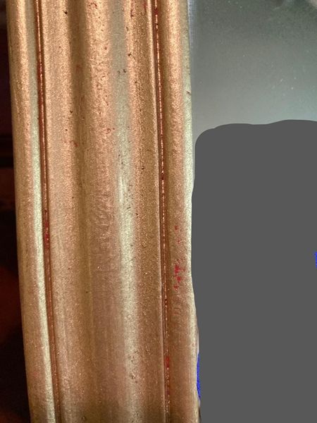 Unique French country No. 9 gilded gold Vertical decorative mirror. It's perfect for over an entry console, over mantle or above your dresser or just to bring light into your space. Comes ready to hang with 2 "D" rings. Images reflected in the mirror were photo shopped out. The mirror glass is in perfect condition