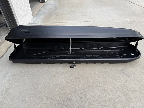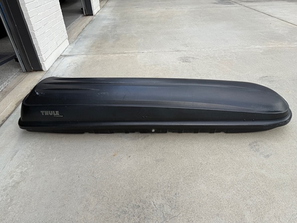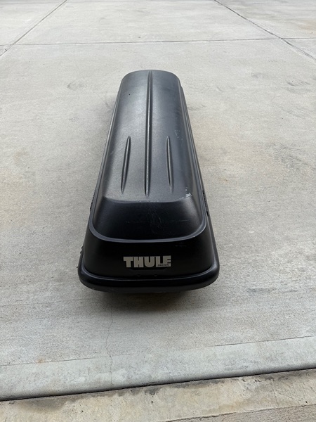Thule Frontier cargo box. In good condition. Attaches to luggage rack crossbars.