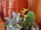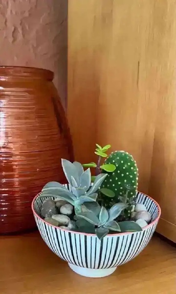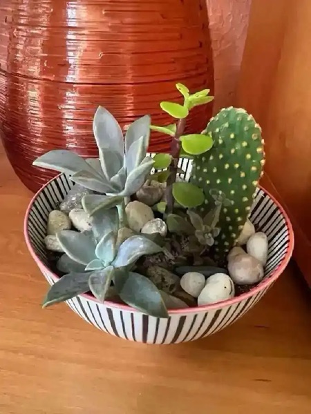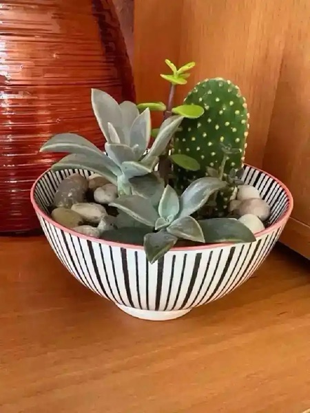 Beautiful live, succulents and cactus arrangement in a decorative striped ceramic bowl...$18 firm