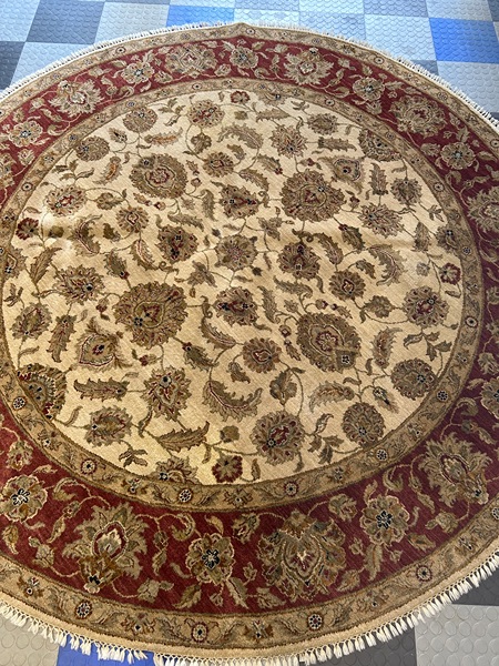 100% wool. Purchased from Star Furniture. 8' diameter. Like new condition.