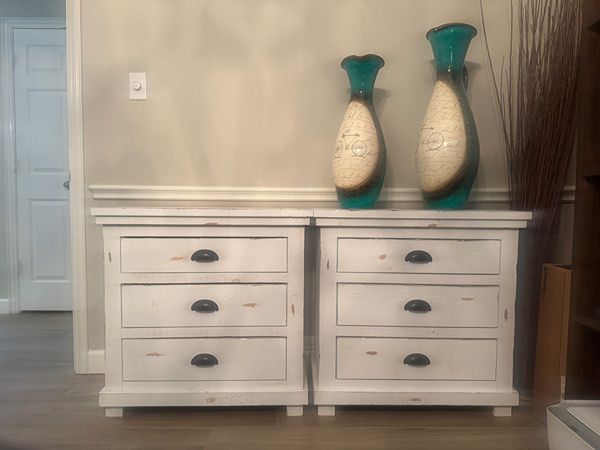 $200 for both. Located at 242/1488. Used in guest room - still have that new smell to them. Purchased on Wayfair but this color no longer available but I did screenshot when they were on sale. Can be used together to make a console table. Dimensions each piece is 31x32x17 inches