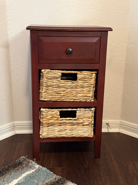 This Santa Cruz end table with storage beautifully embodies coastal cottage charm, making it ideal for a farmhouse or classic contemporary decor. Crafted of pine in finish, Santa Cruz makes finding what you need easier than ever. Leg height is about 3.90, the width and depth of the legs are estimated to be about an inch.