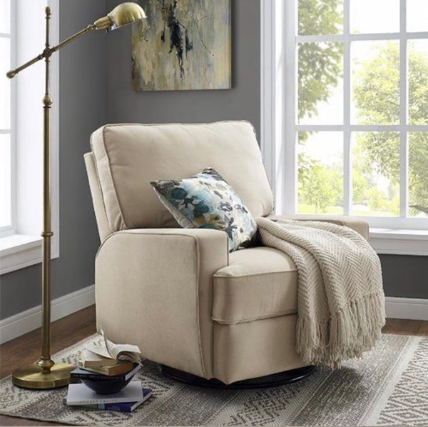 The "Antonio Swivel Reclining Glider" by Viv + Rae is a popular nursery/living room chair known for its 360° swivel, smooth rocking/gliding motion, and manual recline function, offering comfort for parents with features like thick padding, tufting, and often coming with an ottoman, making it great for soothing babies or relaxing. It combines classic style with nursery functionality, featuring wood/metal frames and soft upholstery.