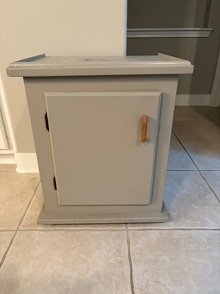 Vintage grey storage cabinet. 21.5"W x 25.5"H x 16.5"D