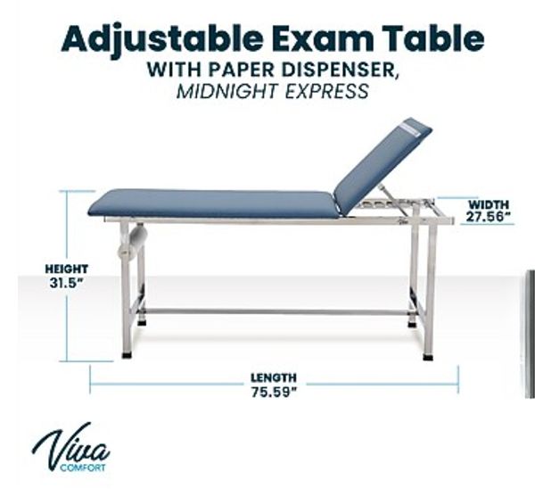Brand new never used AdirMed Viva Comfort Folding Medical Exam Table, Basic Adjustable Patient Treatment Table, Doctor Bed, Blue color. It measures 74.8''L x 27.5''W x 31.4''H. 2' padded foam upholstery, Adjustable backrest, steel frame, 440 lbs. max capacity, Collapsible Legs. Model Retails for $750 + tax on Amazon. If interested please text me at 832-64zero-3422. Pick up only.