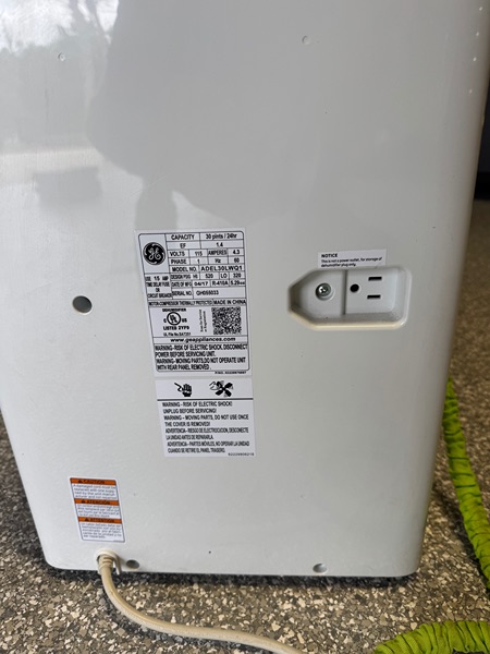 General Electric dehumidifier. Only used a couple times to keep the humidity out of an RV. Paid over $100 for it and is only a couple years old. Excellent condition.