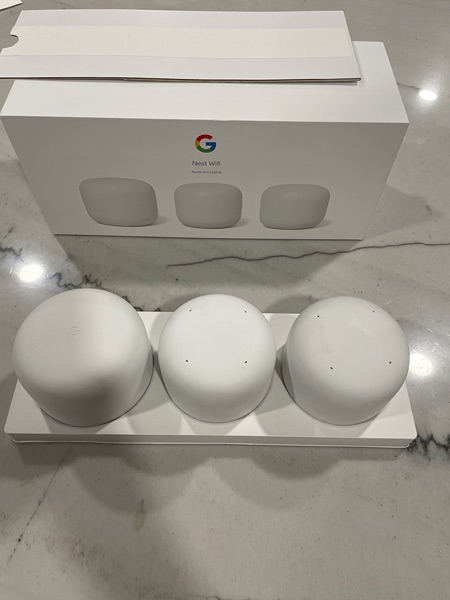 Google nest with router and 2 points. Includes all cables. Great for extending WiFi signal.
