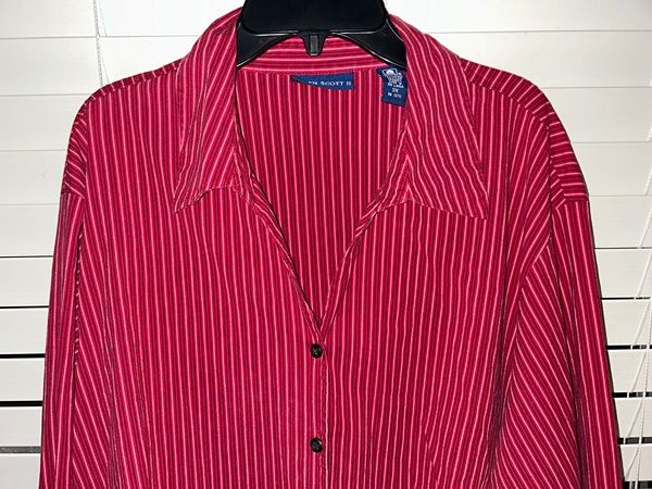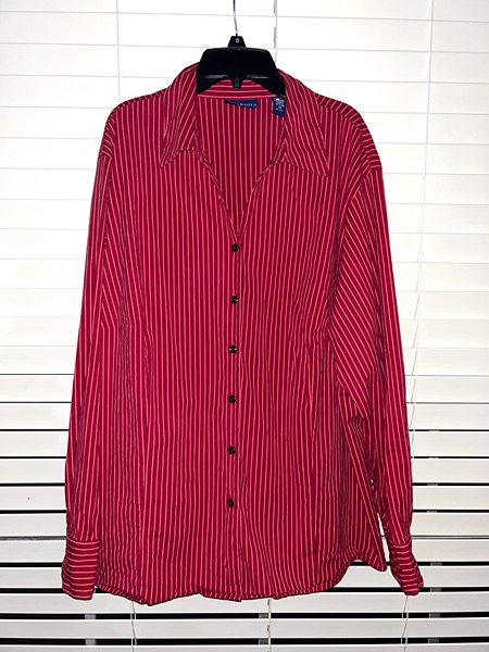 Vintage Karen Scott II vertical striped plus size button up, size 3X. Shirt is in good condition with slight fading but otherwise, no known flaws. It's 4% spandex so it has some stretch. Smoke free home. $5