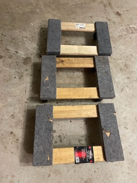 3 different 4 wheel dollys for sale. 1 blue plastic 18 X 30 inch dolly, 1,000 pounds capacity - $25.00, 3 wooden 18 X 30 inch dollys, no weight stamp - $20.00 each or all 3 for $50. 3 wooden 12 X 18 inch dollys, 800 pounds capacity - $15.00 each or all 3 for $35. Text 713-578-0511 is interested. I accept Zelle and cash.