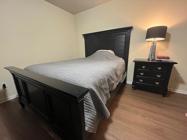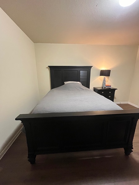Queen bed, dresser and nightstand in good used condition. Normal wear and tear. Non smoking home. I will throw in free 2 lamps (one pictured) too!