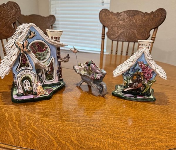 2002 Cart with Flowers Tealight candle holder ** 7.5" x 3" x 3.5"H (height does not include the bird) ** $20.00