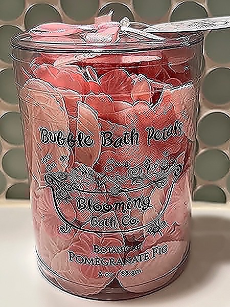 Pomegranate Fig Bubble Bath Petals by Blooming Bath Co. I was going to give these as a gift but then I accidentally sat on the packaging (sigh)…still perfectly usable, just maybe not gift worthy, on account of the packaging state…$10 firm