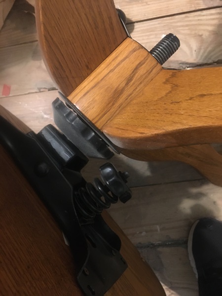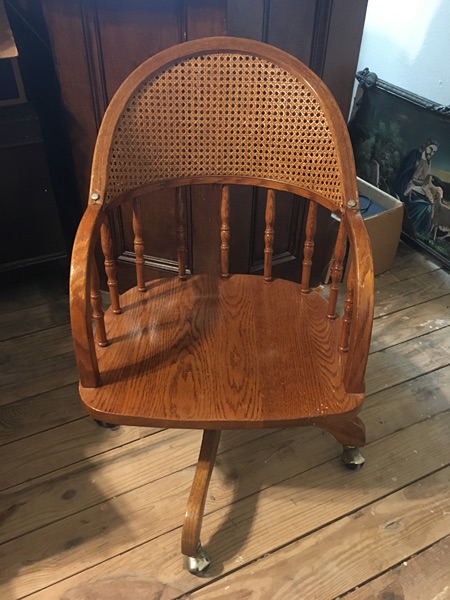 Vintage (1950's) solid, honey oak with cane back swivel, rolling chair - adjustable.