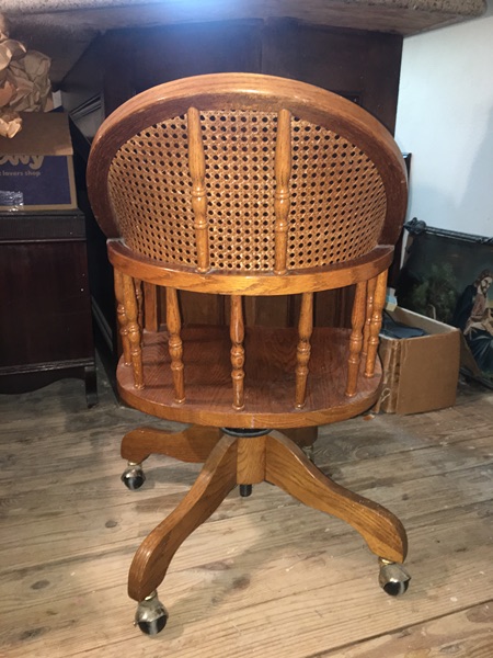 Vintage Cane Back Honey Oak Office/Library Swivel Chair