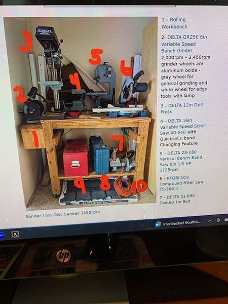 Rolling Work Bench and ALL Tools included. Most have never been used. Has electrical cord. Workbench is very sturdy. There are 10 items.