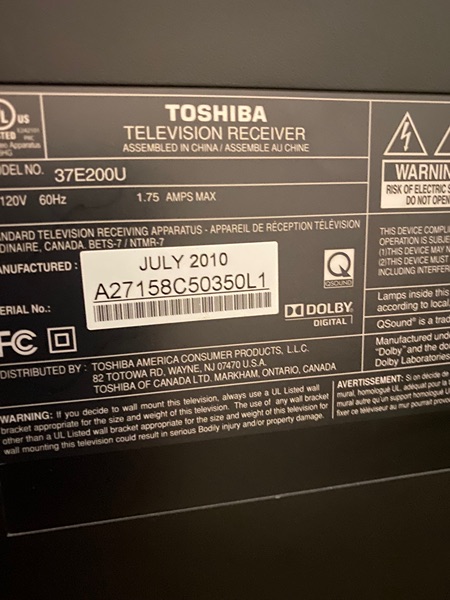 Toshiba 37” TV