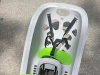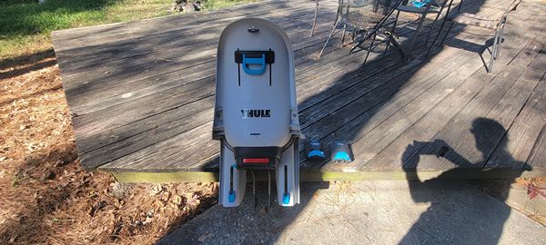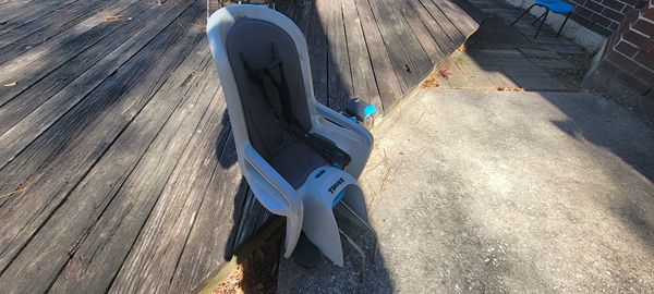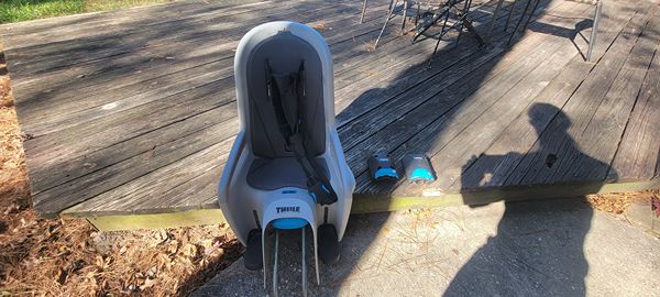 This Thule Bike Seat is used but works great. It comes with everything included in the pictures which means it is missing the key to lock the mounts to your bikes and it is missing the two straps that go over the child's feet. We are located near the Woodlands High School.