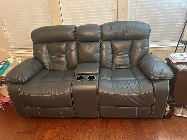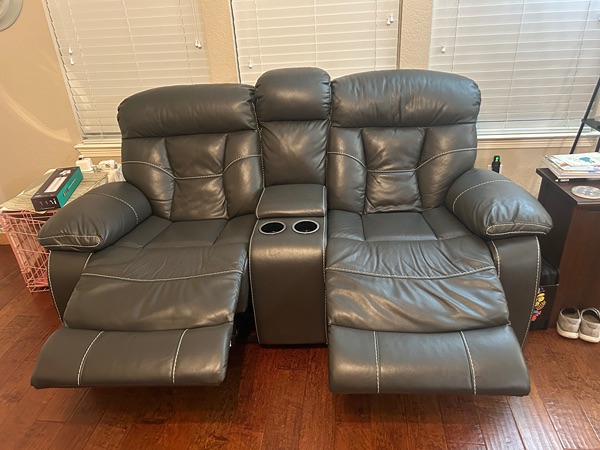 Power leather recliners - Gray with cup holders and center consoles. Excellent condition. No tears, rips or stains. Non-smoking household. Easy to clean and condition. Price is $600. for both. Pick up, no delivery available.