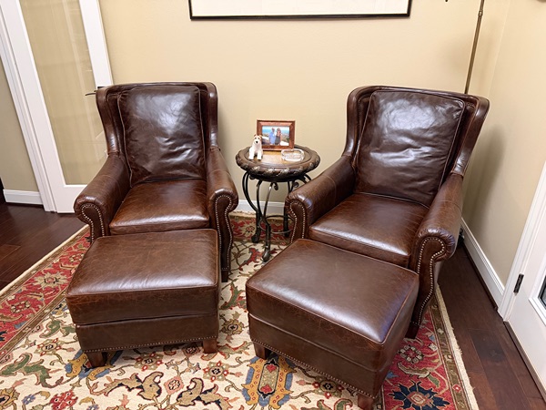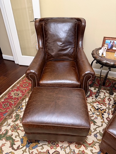 Wingback leather chair and ottoman