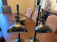 Two Flexsteel wingback leather chairs and ottomans. Deep rich molasses (dark brown) color. 100% leather on a solid wood frame in excellent condition. Chair measures 32"(wide) by 39" (deep) by 40" (high). Ottoman measures 23" (wide) by 19" (deep) by 17" (high). From a smoke free, pet free home.Purchased at Star Furniture for 1500.00 each asking for 400.00 each.
