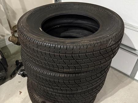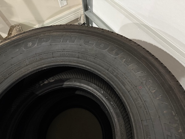 Got a Tacoma and replaced these original tires with some all-terrain tires. These tires probably have 50 miles on them (drove home from the dealership and a couple trips in town before taking to the tire shop. The tires are Toyo Open Country 245/70R17. Will meet at a local shopping center parking lot in The Woodlands to exchange.