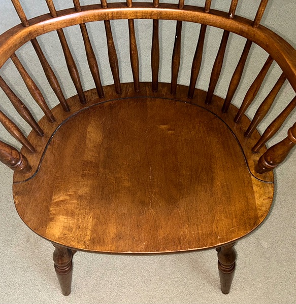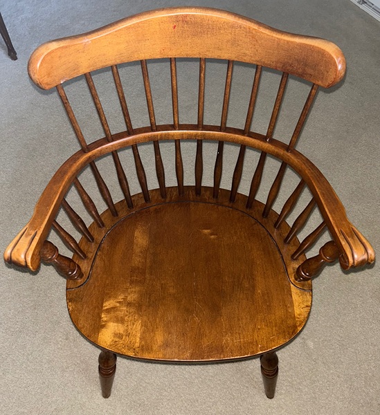 This wooden chair is solid, sturdy, and measures 33’ tall X 24’ wide X 21’ deep. Similar chairs online are selling for up to $1000. I'm not asking that much because I'm not sure of the manufacturer nor the type of wood (although most online are oak or maple). There are some scratches in the seat and some red spots along the top (mostly in the back) that look like red marker. This could be a fabulous accent chair if you're into restoring, refinishing, or restaining furniture. Pictures taken with and without flash so you can see how it looks in different lighting. $100