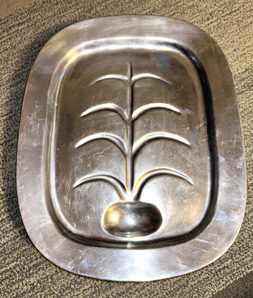 Vintage Pewter Armetale Well and Tree Platter, a collectible meat serving tray from The Wilton Company. Footed, very heavy and sturdy. Measures about 17.5 inches from top to bottom and about 14.5 inches across. Smoke free home. Some scratches, but overall very good condition considering its age. $15