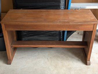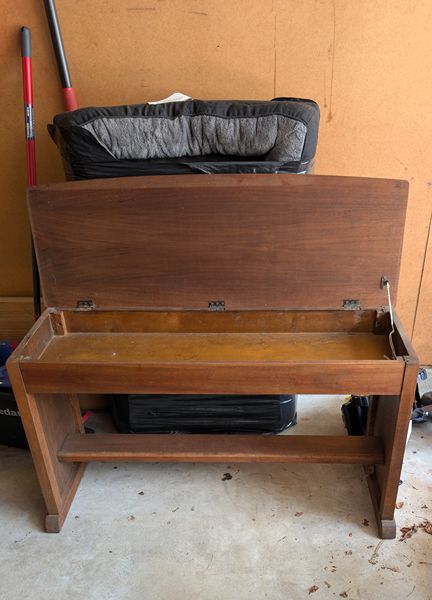 Bench with storage. It will need some tightening up. Great for refinishing or painting.