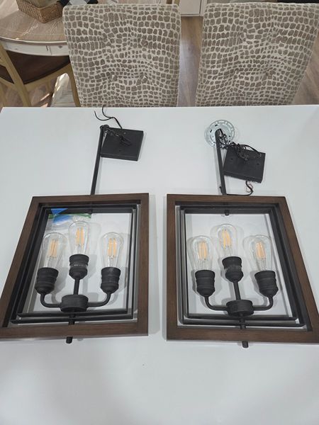 Pair of decorative lights with decorative bulbs. Measurements are in the pics. $45 for the pair.