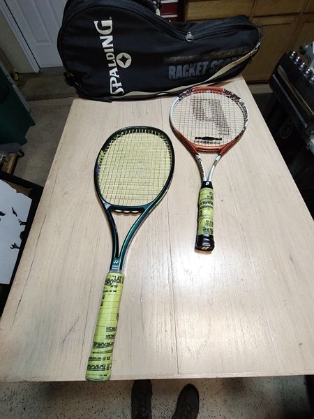 Yonex RQ220 and a Prince Force 3. Both in good condition, as is the carrying bag (carries both).
