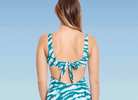 One piece suit with cutout sides, women's size medium, high waist, adjustable back tie, removable cups. Brand is Beach Betty. New with tags from smoke-free home. $10