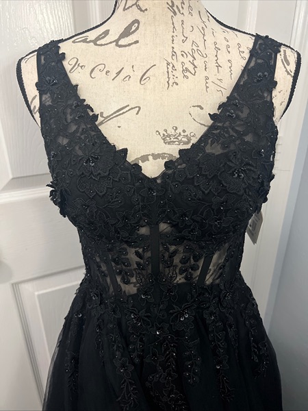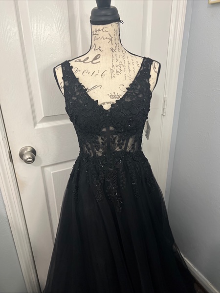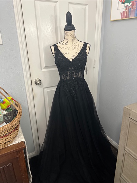 David’s Bridal Galina Signature Gown S 4 Black Embellished Lace & Sequin Formal