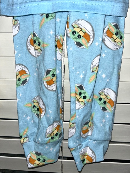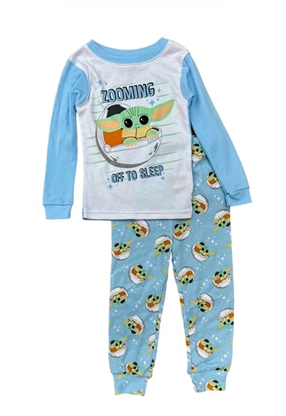 Two-piece toddler snug-fit long sleeve pajamas, size 5T, 100% cotton, featuring Grogu Zooming Off to Sleep. New with tags from smoke free home. $15