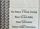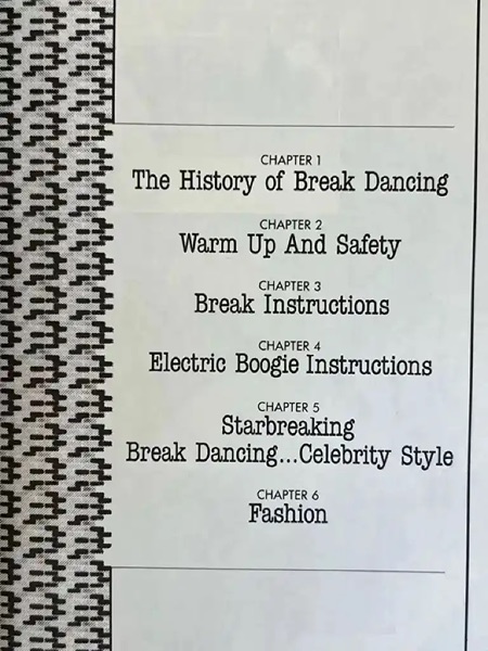 Preliminary advice as fresh today as it was in ’84 (i.e. ask your doctor before attempting to break; check your chosen surface for nails and broken glass) soon gives way to a detailed stretching routine and specific step-by-step guides to headspins, elbow spins, windmills, popping, the Robot, and the Moonwalk — the latter three being Electric Boogie moves, strictly distinguished by Marlow from breaking: “Clearly, Boogie is Boogie and Breaking is Breaking, and never the twain shall meet.”